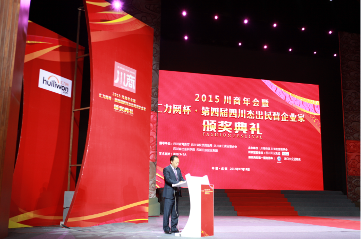 典礼现场,集团董事长赵思俭代表冠名单位——汇力网致辞。赵总指出:“2015年,是“十二五”的收官之年,也是“十三五”的开局之年,更是四川民营企业冲破经济雾霾,取得丰硕成果的一年。在这一年里,国际经济形势持续低迷,国内经济换档减速,各行各业面临严峻挑战,众多民营乃至国有企业经受着生死考验。但也正是在这一年,四川涌现出了一大批敢创新、有担当、经营卓有成效的民营企业家,他们带领着自己的企业充分发挥自身优势,发扬创新创业精神,紧紧把握国家战略实施带来的各项机遇,精准布局,准确研判,不断进行企业生存发展之路的探索,转型升级,稳中求进,在新常态下呈现出新的生机,为稳增长、调结构、促发展、惠民生做出了积极贡献。一批企业家朋友积极返乡投资兴业,带领家乡人民致富,成为助力四川经济腾飞的重要力量。第四届四川十大杰出民营企业家推选活动中评出的年度人物奖、十大杰出民营企业家、杰出川商创新奖和川商返乡投资贡献奖就是对他们的高度肯定和褒扬!